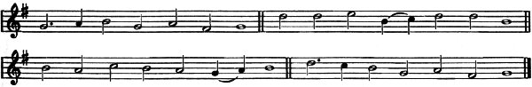 A similar book appeared in 1642, called: Psalms, or Songs of Zion, turned into the language and set to the tunes of a strange land, by William Slatyer, intended for Christmas Carols and fitted to divers of the most noted and common but solemn tunes, everywhere in this land familiarly used and known. That the Puritans of that century did not invariably confine themselves to “solemn tunes” is indicated by Shakespeare when the Clown in The Winter’s Tale, in praising the vocal prowess of the shearers, assembled for the sheep-shearing feast, says: “Three-man song-men, all, and very ix good ones...; but one Puritan amongst them, and he sings Psalms to hornepipes.” In the New Variorium Shakespeare, H. H. Furness, in commenting on the passage, says: “He sings Psalms to the lively tunes to which horn-pipes were danced,—a practice which, we know was extremely popular in France, and from allusions like the present we can infer that it was not unknown in England.”