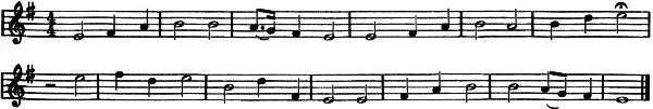 Shape notes, as is explained in White Spirituals, indicate their pitch by their shapes, independently of the lines and spaces of the staff. They were invented to simplify the reading of music. There are two principal systems, the Four Shape and the Seven Shape. In the Four Shape, the first and fourth degrees of the scale are called fa and are represented by a right triangle; the second and fifth are called sol, represented by a round shape; the third and sixth, la, by a square head and the seventh, mi, by a diamond. The Seven Shape system has a different form of note for each degree of the scale and the nomenclature accords with our general practice. The nomenclature of the Four Shape system is of especial interest because x it was known and practised by Shakespeare. Numerous references to it occur in his plays. In King Lear this system is employed in an almost Wagnerian manner to characterize the archvillain, Edmund, who in soliloquy says: “My cue is villanous melancholy” and then sings: “Fa, sol, la, mi.” These four tones measure the extent of a tritone, the forbidden interval called the diabolus or the devil and supposed to be filled with sinister, ominous and evil potency.