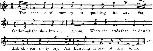 Chappell, in his Popular Music of the Olden Time, says: “We may date the custom of singing hymns to secular tunes from this time [The Norman Conquest] if, indeed, it may not be carried back to the time of St. Aldhelm. William of Malmesbury records of Thomas, Archbishop of York (created in 1070), that ‘whenever he heard any new secular song or ballad sung by the minstrels, he immediately composed parodies on the words to be sung to the same tune.’