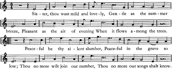 With the spread of this movement to America a fertile soil for its further development seems to have been found. Here it became known as the Great Southern and Western Revival. Here its store of songs, made after the pattern used in England, was greatly enlarged. In fact the masses took the matter of what they were to sing so completely into their own hands that the denominational authorities, especially the Methodists, though they tried to control it, became helpless.[2]