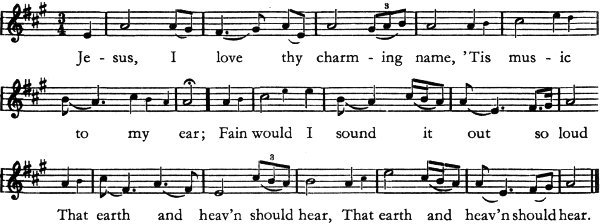 The full text, by Samuel Medley (1738-1799), may be found under ‘River of Jordan’ in this collection. The Southern and Western Pocket Harmonist gives this tune “as sung by Rev. M. L. Little”. An old Irish song in Petrie, No. 1164, shows noteworthy similarities. See also ‘I Want a Seat in Paradise’, in this collection, for further tune relationships.