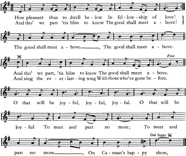 The value of these books to students and lovers of our folk-music is incalculable. For although many of the tunes are still extant in the oral tradition, a large portion of them, of indubitable folk origin, have vanished from the oral tradition and, but for these books, would be entirely lost. All who are familiar with the folk-dance revival in England realize the importance of Playford’s English Dancing Master in preserving a large number of tunes and dances that were no longer traditionally extant. The folk material embodied in the shape-note books is no less important and far more varied; it is, in fact, indispensible to all who desire a comprehensive knowledge of British and American folk-music.