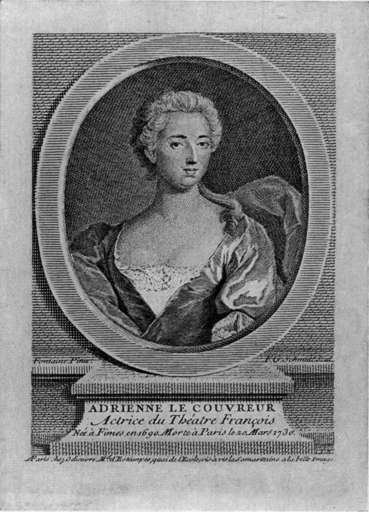 Among the numerous admirers of Adrienne was the count Maurice de Saxe (see Notes), who, after various love affairs and scandals, was attracted to this eminent young actress on his second visit to Paris, in 1721. Their love was mutual and the friendship continued for several years. When, in 1725, he wrote to France for money, to enable him to secure the duchy of Courlande, Adrienne sold her jewels and silver plate and thus raised for him the sum of 40,000 francs. Nevertheless, he failed in this enterprise and, after years of absence, he returned to Paris, October 23d, 1728. Differences in taste and especially the infidelity of the count caused an estrangement.