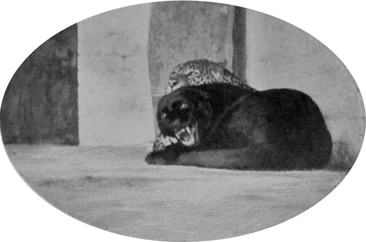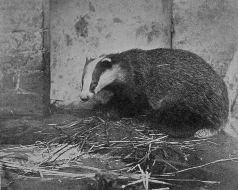 Next in size to the thylacine, but possessing a more unenviable notoriety for the uncompromising sulkiness and savagery of its disposition, is the animal which, in virtue of the aforesaid qualities, is known by the title of the Tasmanian Devil. In shape and dimensions this marsupial carnivore somewhat resembles a badger; but the head is abnormally large, the masseter muscles which control the action of the powerful jaws monopolising a very considerable share of the face area. The limbs are short and also very powerful, the front paws being well adapted to its burrowing habits. There is some slight variation in the colours of this marsupial Apollyon; and, as the {374}aphorism runs concerning his sable namesake, he is not always so black as he is painted. More or less or in fact mostly black he always is, but there is usually a redeeming thread or patch of white upon his coat. This may take the form of a small star-like spot only on the front of its chest, which not infrequently extends to a narrow crescent-shaped band or line continued round the neck almost to the shoulders. One or more supplementary spots of white may also be developed upon the flanks and hindquarters.