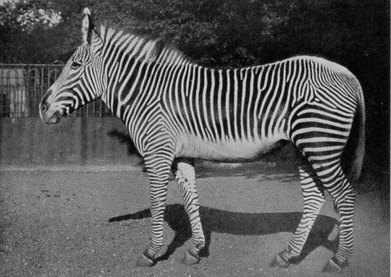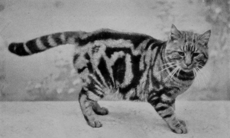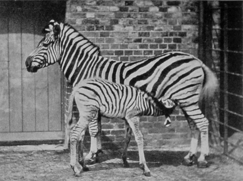 One of the commonest species found in Tasmania is known as the Banded or Striped-backed Bandicoot, being so named on account of the characteristic markings of its fur. The general ground-colour of the coat is an almost equal admixture of black and yellow hairs, the black tint, however, prevailing on the back, and the lighter one on the sides. The hindquarters are, however, variegated by the presence of some three or four broad transverse stripes that are almost entirely black, while the intervening spaces are a light whitish yellow. A few shorter stripes are sometimes continued as far as the root of the tail, this appendage also having a dark line running along its upper surface. The head is of a somewhat lighter tint than the remainder of the body, while the breast, abdomen, and feet are white, slightly tinged with grey. The transversely striped pattern of ornamentation of the hindquarters of this bandicoot is of interest with relation to the circumstance that a similarly located banded variegation of the fur occurs also in the Tasmanian wolf, or thylacine, and in the banded ant-eater, described in a following section. As a colour-pattern it would appear to be quite peculiar to these marsupials, no such restriction of the markings occurring among the higher or placental mammals. In the South African suricate, a member of the Ichneumon Tribe, in which the nearest approach to this dorsal banding is met with, the stripes are equally developed as far forward as the base of the neck.