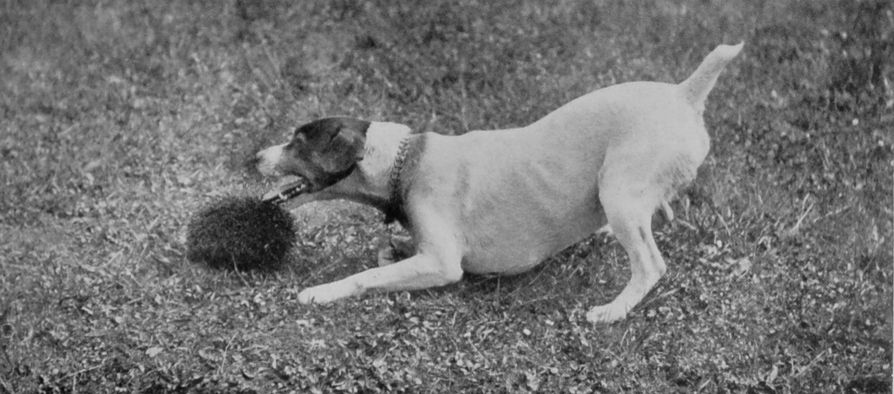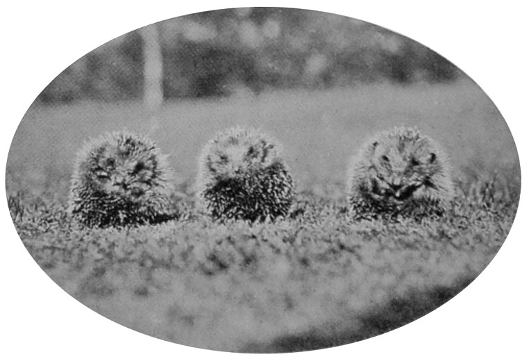 The writer, during his residence in Tasmania, had several examples of the local species as domestic pets. For the first few days they were very shy and untractable, burrowing into the earth and seeking to escape, or presenting an impenetrable cheval de frise of sharp-pointed spines to the hands that sought to caress them. After a short interval, however, the creatures became entirely reconciled to human society and the small amount of restraint to which they were subjected. They would follow their owner about the garden, or, flattening their bodies and spreading out their limbs to the greatest extent, lie basking in the sun close to where he might be seated. They also apparently appreciated being carried, slung across their owner's arm after the manner of a lap-dog. Living in the near vicinity of unreclaimed bush-land, it was found possible to keep these echidnas well supplied with their customary food; they were, in fact, permitted to forage on their own account. Liberated amidst their normal surroundings, they would walk leisurely from one ant-hill to another, tearing down the side of it with their powerful front claws, and appropriating its living contents with the greatest relish. It was observed, however, in this connection that the echidna paid attention entirely to the succulent white larvæ and pupal phases of the insects with which the inner chambers of the ant-hills are customarily crowded, and that adult ants, as they abounded in the tracts near at hand or elsewhere, were altogether neglected. In addition to this natural food these animals were supplied daily with a saucer of either well-softened bread or porridge and milk, for which they evinced a decided appreciation, assimilating this food dexterously, though somewhat slowly, with the aid of their long protrusile tongues. Allowed to wander about the house, they displayed a most inquisitive turn of mind, peering into every crevice, and climbing upon every accessible article of furniture.