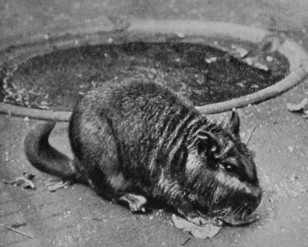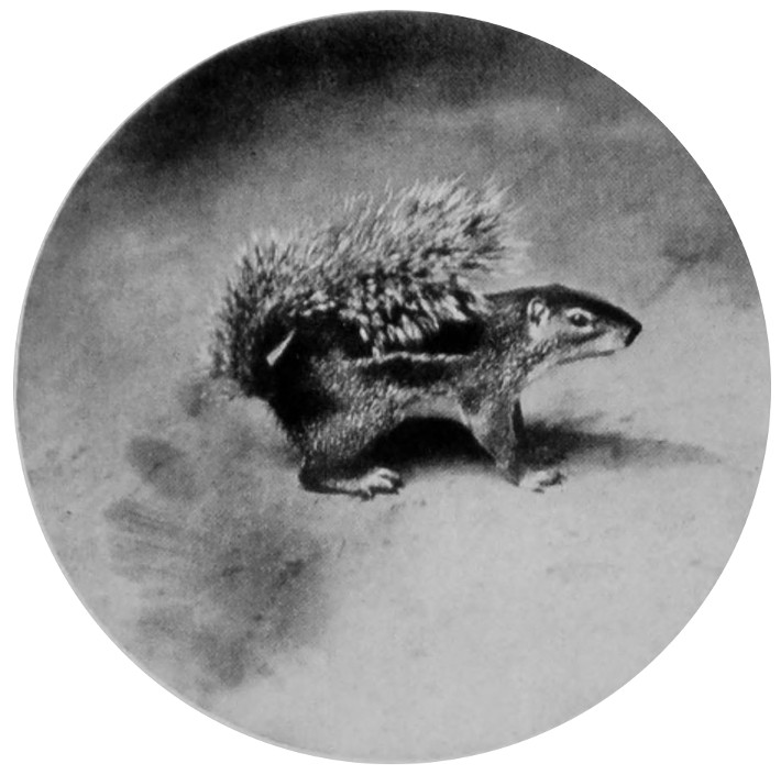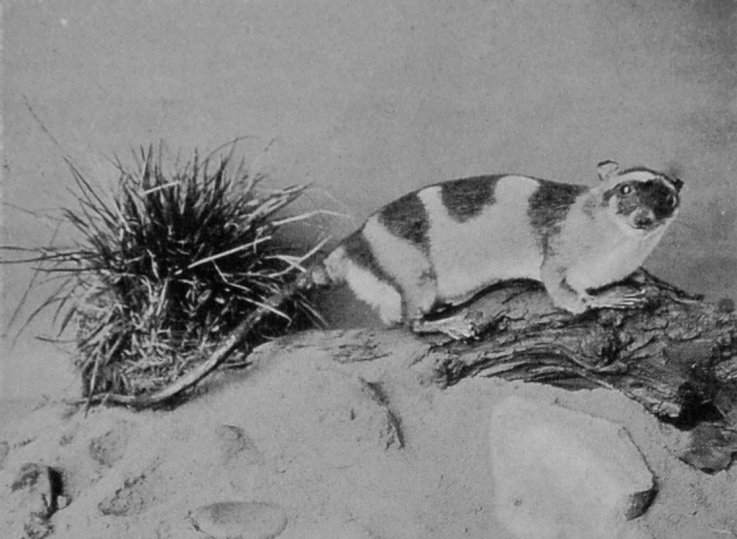 One of the most interesting from the zoologist's standpoint, and the last on our list of the Australian marsupials, is the little creature, limited in its habitat to Western Australia, locally known as the Squirrel. The Banded Ant-eater, with reference to its striped ornamentation and ant-eating habits, is the name by which it is usually chronicled in natural history works. In size and shape, except for its more pointed snout, its squirrel-like aspect is certainly somewhat striking. Like the true ant-eaters of the Edentate Mammalian Order, it, however, possesses a long protrusile tongue, with which it is accustomed in a similar manner to lick up the ants which constitute its main food-supply.