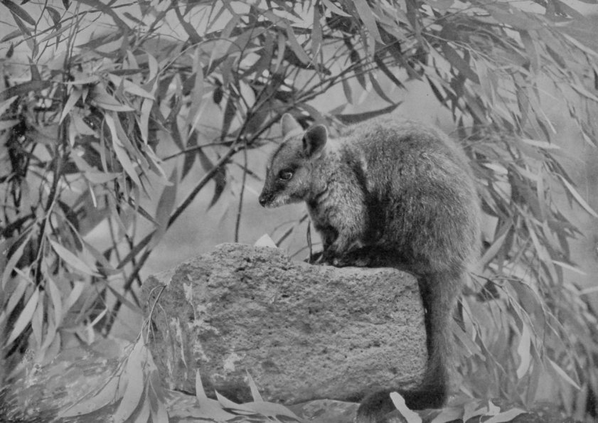 Many of the smaller members of this tribe are no larger than mice; and in one form, known as the Jerboa Pouched Mouse, inhabiting Queensland and New South Wales, the hind limbs are abnormally prolonged, and the animal progresses by leaps and bounds, after the fashion of the true jerboas, or its nearer relatives, the ordinary kangaroos and rat-kangaroos.