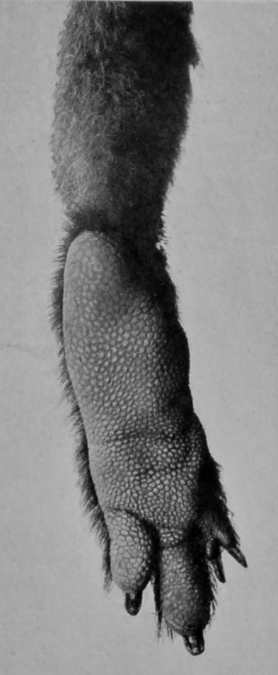The colour of the pouched mole is for the most part light fawn, varying in parts to golden yellow. One of its most conspicuous features, as illustrated in the accompanying photographs, is the abnormal size of the third and fourth toes of the fore limbs, their peculiar scoop-like character proving of eminent service to the animal in its customary sand-burrowing habits.