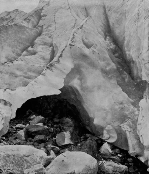 On every side there were evidences of glacial erosion, not only in the form of bowlders and debris, but in lateral moraines, where the glacier had left deposits, and in gorges where great granite blocks had been tumbled, over which in places the water cantered and fell in beautiful sheets. In one place, towards the base, were found many small aspen trees cut down, and most frequently the trunks were divested of their bark, and the tender limbs were missing. Investigating the cause, it was directly discovered to be the work of beavers, several of whose dams were perceived in a creek that ran through a beautiful meadow land, but no one of the party was able to catch sight of the wary animals.