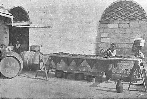 Quest'ultimo allora si utilizza in diversi modi, secondo le circostanze o la qualità delle uve. Uno dei mezzi più comuni consiste nel riunire separatamente, in due recipienti distinti, che possono essere botti o tini, i torchiati intieri o residuali delle vinacce di uve bianche e di quelle rosse. Si lasciano fermentare sino ad avere un vino asciutto, di colore [152] giallo-paglia nel primo caso e un vino rosso da pasto o da mezzo taglio nel secondo caso.