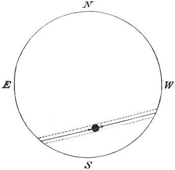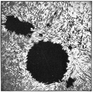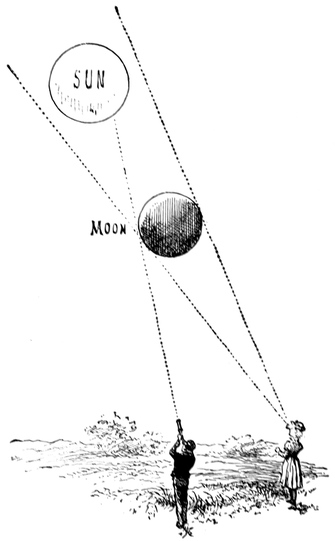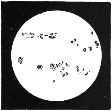 The brightness of the sun is among the most wonderful things in nature, and there are three points that I ask you to remember, and then indeed you will agree with Milton, that the sun is “with surpassing glory crowned.” First think of the beauty and brilliancy of a lovely day in June. Then remember that all this flood of light comes from a single lamp at a most tremendous distance; and thirdly, recollect that the sun is not like a bull’s-eye lantern, concentrating all his light specially for our benefit, but that he diffuses it equally around, and that we do not get on this earth the two-thousand-millionth part of what he gives out so plenteously! When we think of the brightness of day, of the distance from which the light has come, though Nature has not adjusted any vast lenses to direct10 the light specially in our direction, we begin to comprehend the sun’s true magnificence.