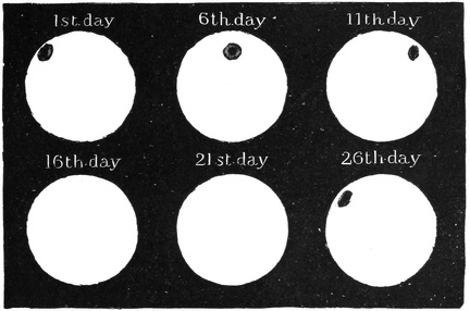 | The Phases of our Attendant the Moon—The Size of the Moon—How Eclipses are produced—Effect of the Moon’s Distance on its Appearance—A Talk about Telescopes—How the Telescope aids us in Viewing the Moon—Telescopic Views of the Lunar Scenery—On the Origin of the Lunar Craters—The Movements of the Moon—On the Possibility of Life in the Moon | 74 |
