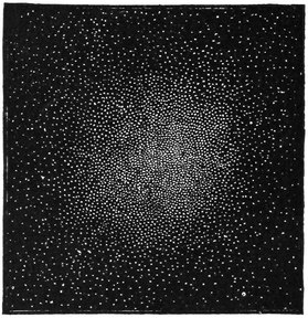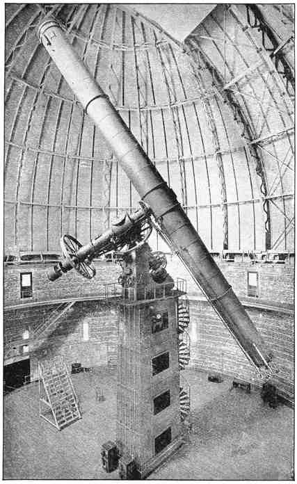 On the blackboard I draw a little circle with a piece of chalk. I think of our earth as the centre, and this circle will mark for us the limit to which our greatest telescopes can sound. Every star which we see, or which the photographic plate sees, lies within this circle; but, are there no stars outside? It is true that we can never see them, but it is impossible to believe that space is utterly void and empty where it lies beyond the view of our telescopes. Are we to say that inside this circle stars, worlds, nebulæ, and clusters are crowded, and that outside there is nothing? Everything teaches us that this is not so. We occasionally gain accession to our power by adding perhaps an inch to the diameter of our object-glass, or by erecting a telescope in an improved situation on a lofty mountain peak, or by procuring a photographic plate of increased sensibility. It thus happens that we are enabled to extend our vision a little378 further and to make this circle a little larger, and thus to add a little more to the known inside which has been won from the unknown outside. Whenever this is done we invariably find that the new region thus conquered is also densely filled with stars, with clusters, and with nebulæ; it is thus unreasonable to doubt that the rest of space also contains untold myriads of objects, even though they may never, by any conceivable improvement in our instruments, be brought within the range of our observation. Reflect that this circle is comparatively small with respect to the space outside. It occupied but a small spot on this blackboard, the blackboard itself occupies only a small part of the end of the theatre, while the end of the theatre is an area very small compared with that of London, of England, of the world, of the solar system, of the actual distance of the stars. In a similar way the region of space which is open to our inspection is an inconceivably small portion of the entire extent of space. The unknown outside is so much larger than the known inside, it is impossible to express the proportion. I write down unity in this corner and a cipher after it to make ten, and six ciphers again to make ten millions, and again, six ciphers more to make ten billions; but I might write six more, ay, I might cover the whole of this blackboard with ciphers, and even then I should not have got a number big enough to express how greatly the extent of the space we cannot see exceeds that of the space we see. If, therefore, we admit the fact, which no reasonable person can doubt, that this outside, this unknown, this unreachable379 and, to us, invisible space does really contain worlds and systems as does this small portion of space in which we happen to be placed—then, indeed, we shall begin truly to comprehend the majesty of the universe. What figures are to express the myriads of stars that should form a suitable population for a space inconceivably greater than that which contains 100,000,000 stars? But our imagination will extend still further. It brings before us these myriads of unseen stars with their associated worlds, it leads us to think that these worlds may be full to the brim with interests as great as those which exist on our world. When we remember that, for an adequate description of the worlds which we can see, one hundred thousand libraries, each greater than any library on earth, would be utterly insufficient, what conception are we to form when we now learn that even this would only amount to a description of an inconceivably small fragment of the entire universe?