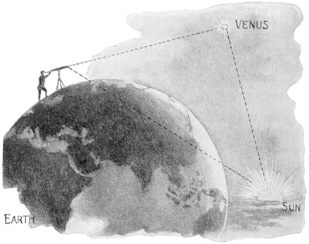 But when we look at the sun we have no aids conveniently placed to help us in judging his distance. There are no intervening objects, and merely gazing at the sun helps us but little in obtaining any accurate knowledge. We must go to the astronomer and ask him to tell us how far he has found the sun to be, and then we must also beg from him some explanation of the method he has used in making his measurements.