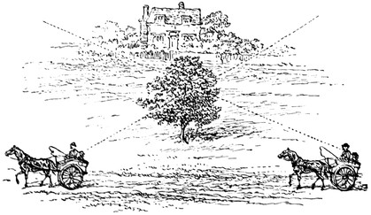 The sun is a very long way off. It is not easy for you to imagine a distance so great, but if you want to learn astronomy you must make the attempt. This is the first measurement that we shall have to make on our way to that far-off country called Star-Land; but long as we shall find it to be, we shall afterwards have to consider distances very much longer. When you are out in the street, or taking a walk in the country, you can see at once that this man is near, or that house is far, or that mountain is many miles away. This is because you have other objects between to help you to judge of the distances of these different objects. You will see, for example, that there are many houses or farmyards, and you will notice hedges dividing different fields between you and the mountain. You also see that there are woods and parks, and perhaps stretches of moorland extending up the slopes. You have an18 impression that the farmyards and fields are of considerable size, and that the woods or moors are wide and extensive; and putting these things together, you realize that the mountain must be miles away.