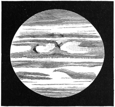 And now, my young friends, I am drawing near the close of that course of lectures which has occupied us, I hope you will think not unprofitably, for a portion of our Christmas holidays. We have spoken of the sun and of the moon, of comets and of stars, and I have frequently had occasion to allude to the relative position of our earth in the universe. No doubt it is a noble globe which we inhabit, but I have failed in my purpose if I have not shown you how insignificant is this earth when compared with the vast extent of some of the other bodies that abound in space. We have, however, been endowed with a feeling of curiosity which makes369 us long to know of things beyond the confines of our own earth. Astronomers can tell us a little, but too often only a little. They will say—That is a star, and That is a planet, and That is so big, and That so far; such is the meagre style of information with which we often have to be content. The astronomers who live on other worlds, if their faculties be in any degree comparable with ours, must be similarly ignorant with regard to this earth. Inhabitants of our fellow-planets can know hardly anything more than that the earth on which we dwell is a globe 8000 miles across, with many clouds around us. Some of the planets would not even pay us the compliment of recognizing our existence; while from the other systems—the countless other systems—of space we are absolutely imperceptible and unknown.