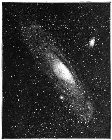 364 Of all the nebulæ, now numbering some thousands, there is but a single one which can be seen without a telescope. It is in the constellation of Andromeda, and on a clear dark night can just be seen with the unaided eye as a faint stain of light on the sky. It has happened before now that persons noticing this nebula for the first time have thought they had discovered a comet. I would like you to try and find out this object for yourselves.