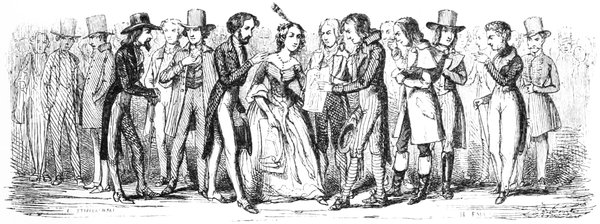 Les jeunes modèles chantent, jouent la comédie bourgeoise, se disent entretenus par des femmes de députés, et sont toujours sur le point d’être reçus à l’Opéra-Comique. Les modèles à barbe font des commissions et cirent les bottes; ce sont souvent d’anciens militaires, qui racontent la bataille de Champaubert, et crient: «Vive l’empereur!» quand ils ont bu.