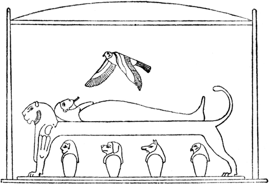 Die Texte der Pyramiden stellen den Glauben außer Zweifel, daß der Dahingeschiedene in seinem Pyramidenhause nach seinem vollendeten irdischen Dasein sich eines neuen Lebens erfreute, das er körperlich auf Erden, seelisch im Himmel weiter führte. Aber die Seele vermochte nach ihrem Belieben sich mit dem Leibe zu vereinigen und den erstarrten Gliedmaßen und dem stillstehenden Herzen Gelenkigkeit und Bewegung zu verleihen. „Du lebst und du stirbst nicht,“ rufen in mehrfacher Wiederholung die Inschriften aus und das Leben war ganz nach irdischen Vorbildern eingerichtet. Der wiedererweckte Tote ißt und trinkt, ohne je zu hungern noch zu dürsten, er empfindet alle Bedürfnisse des menschlichen Leibes, er wandelt auf seinen Füßen einher, er verrichtet auf den elysäischen Gefilden die üblichen Arbeiten des Landmannes, er kämpft mit Speer, Pfeil und Beil gegen die Feinde an, er feiert an den Festtagen des ägyptischen Kalenders frohe Feste, er vergnügt sich an der Jagd, am Vogelfang, am Fischen und an sonstiger Kurzweil, er gleicht mit einem Worte dem frommen König Osiris, der nach seinem gewaltsamen Tode zum erstenmale den Aufgang zum Lichte am östlichen Himmel vollzog und dem Gerechten als Vorbild diente in Gegenwart und Zukunft, auf Erden und im Himmel. Der aus der irdischen Welt abgeschiedene Mensch ging geradezu in dem Wesen des Osiris auf und auch ihm sollte zu teil werden, was dem Gotte beschieden war, dem sein Sohn Horus (die neugeborene Sonne) als Rächer und seine Schwestern Isis und Nephthys (die Flügel der Morgenröte) als Schirmerin und Schützerin alltäglich erstanden. Im[S. 187] jungen Horus verkörperte sich die Wiedergeburt des Vaters, in den beiden Göttinnen zugleich die Natur als nährende Amme, denn sie heißen die Sängerinnen des Gottes.