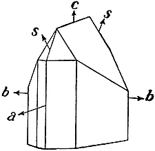 Crystals belonging to this system are doubly refractive and biaxial, i.e. they have two directions of single refraction (cf. p. 45). The three axes a, b, c (Fig. 11) are parallel respectively to the two bisectrices of the directions of single refraction, and the direction perpendicular to the plane containing those directions.