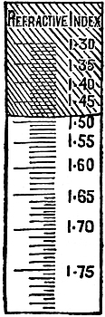 The refractive index of air is taken as unity; strictly, it is that of a vacuum, but the difference is too small to be appreciated even in very delicate work. Every substance has different indices for light of different colour, and it is customary to take as the standard the yellow light of a sodium flame. This happens to be the colour to which our eyes are most sensitive, and a flame of this kind is easily prepared by volatilizing a little bicarbonate of soda in the flame of a bunsen burner. A survey of Table III at the end of the book shows clearly how valuable a measurement of the refractive index is for determining the species to which a cut stone belongs. The values found for different specimens of the species do in cases vary considerably owing to the great latitude possible in the chemical constitution due to the isomorphous replacement of one element by another. Some variation in the index may even occur in different directions within the same stone; it results from the remarkable property of splitting up a beam of light into two beams, which is possessed by many crystallized substances. This forms the subject of a later chapter.