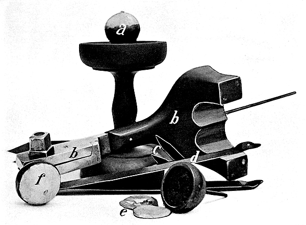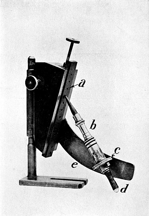 We see from equation b (p. 18), connecting the angle of total-reflection with the refractive indices of the adjacent media, that, if the denser medium be constant, the indices of all less dense media may be easily determined from a measurement of the corresponding critical angle. In all refractometers the constant medium is a glass with a high refractive index. Some instruments have rotatory22 parts, by means of which this angle is actually measured. Such instruments give very good results, but suffer from the disadvantages of being neither portable nor convenient to handle, and of not giving a result without some computation.