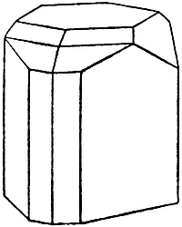4. Orthorhombic.—Such crystals can be referred to three axes, which are mutually at right angles, but in which each of the directional characters are different. The crystals are usually prismatic in shape, one of the axes being parallel to the prism edge. Topaz, peridot, and chrysoberyl are the most important species crystallizing in this system.