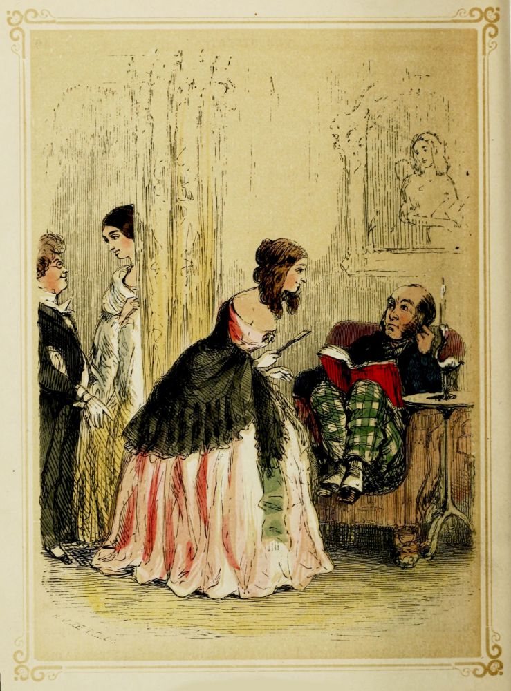 At this puncture Miss Clarissa Newboy enters in a pink paletôt, trimmed with swansdown—looking like an angel—and we exchange glances of—what shall I say?—of sympathy on both parts, and consummate rapture on mine. But this is by-play.