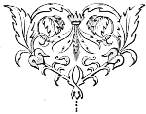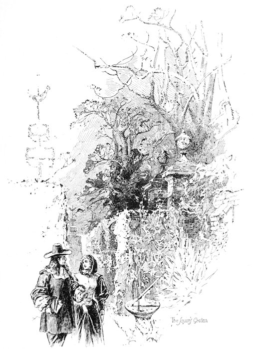 BEFORE I went to Bed, I peeped out of my Window, and saw the full Moon shining over the broad gravel Walks and Fishponds; and I thought how much I should like to go round the Garden before Breakfast. However, when I woke in the Morning, I feared I had been oversleeping myself, so dressed in a great Hurry, and went down Stairs. There I found two Maids flooding the great Hall with Pails of Water, and they told me we were to breakfast in the green Parlour, but not 258for an Hour yet. So I strayed out into the Garden, where were still a good many Flowers, though the Season was so late, backed by Evergreen Hedges, and Rows of tall Trees that were turning yellow and scarlet; and it seemed to me just like the Garden of Eden.