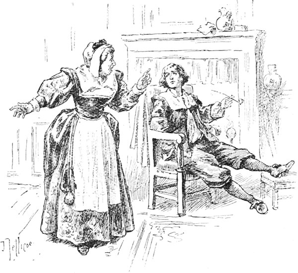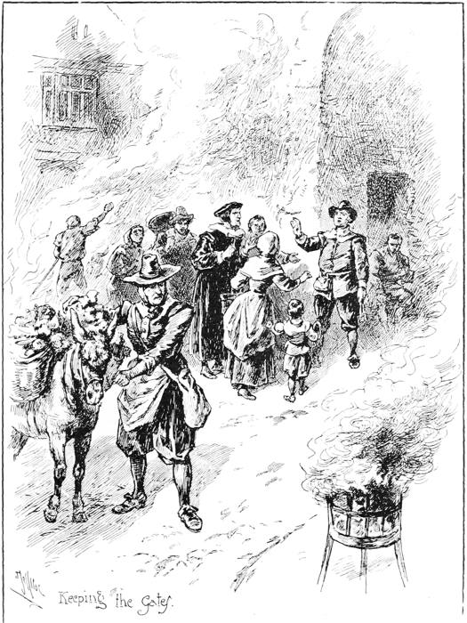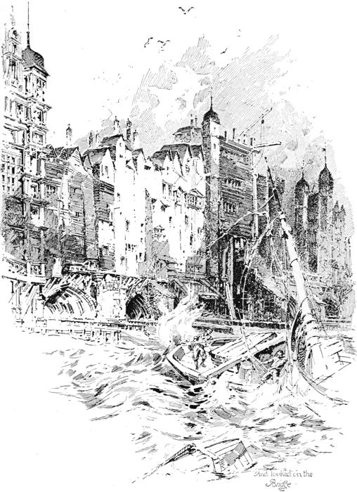 It was a happy thought which made the story begin on old London Bridge—happier still, readers will now think when they see Mr. Herbert Railton’s beautiful drawings. Something we learn of the stress of the time as we recall, with Mistress Cherry, the strange pageants which the bridge-dwellers watched from their windows. They saw the double xxitide, portent of unknown woes. They saw how the mighty Strafford went serenely to his death, and the old Archbishop passed up and down under guard on the long days of his weary trial. They saw the King come to his own again—and some of them may have looked out of windows that wet Sunday night in 1662 when Mr. Pepys had left his singing of “some holy things” and went back by water, shooting the rapids under “the bridge (which did trouble me) home, and so to bed.” The life on the bridge must have been something which an Englishman’s experience of to-day can hardly help to picture. Something of it we may fancy as we enter an old shop on the Ponte Vecchio at Florence, or look out upon it and the Arno from the long corridor that connects the Uffizi with the Pitti. But on that narrow space is no such crowded life as on old London xxiiBridge—no such dangers for foot-passengers, drivers, and horsemen. To picture this in seventeenth-century England we must cross near mid-day from Stamboul towards Pera by the far-famed Galata Bridge. Scarce anywhere but in Florence and in Constantinople can we now recall what sights old London Bridge must have witnessed. Mr. Railton sees them, though, very clearly, and we are more than content to see with his eyes. Something idealised they are, perhaps. Old London Bridge was hardly so beautiful, surely, as he pictures it; and his drawings, perhaps, are more like what the houses ought to have been than ever they were. “More Nurembergy than Nuremberg,” says Mr. Ruskin of some of Prout’s famous work. We may say it of Mr. Railton’s old London; and high praise it is. And as Mr. Railton brings back to us the scenes, so Mr. Jellicoe xxiiigives us the persons of old time in their habits as they lived.