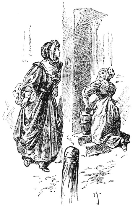 Though the Journey was delightsome, yet towards the latter End of it, every Mile of the Road became less and less pleasant, till at length we got into the Tide of People, on Horse and on Foot, setting in towards London. Then, how strange it seemed to me that I was not going back to the Bridge! where I had lived all the Days of my Life till within the last Week! I began to tremble a little; and the Idea of the great old roomy, gloomy House in Whitechapel, with no bright, sparkling Water to look out upon, became rather oppressive to me, till I thought how Master Blower’s continual Presence would light it up. The Streets now becoming thronged, he pressed my Arm tighter to him and bade me hold on close; and I felt he was all 278the World to me, be the House what it would. But when we reached it, what a Difference! The whole Front had a fresh Coat of Paint, which made it wondrous lightsome and cheerful; the Door-step was fresh whitened, the Door fresh varnished, the Knocker fresh polished, and Mistress Peach standing on the Step with a new Cap plaited close round her sweet, pleasant Face, and dressed in a new grass-green Gown. I could not help kissing her as I ran in; she said, “God bless you, Mistress!” with hearty Cordiality, and followed me from Room to Room. Everything had been cleaned up, and she told me, laughing, that though she had had Plenty of Helps, it had been the hardest Week’s Work she had ever had in her Life. The old green Bed-furniture had given Place to new white Dimity; there was 279a Lady’s Pincushion on the Toilette, with “May you be happy!” in minikin Pins; and a Beau-pot of Flowers on the Window-seat. “All that is Mistress Violet’s doing,” said Dorcas; “she has not left the House half an Hour, I assure you, and her Needle went in and out as fast as could be when she was finishing the last Muslin Blind. Oh, she has been very busy, has Mistress Violet! ’Twas she set out the Supper Table with the Flowers, and Sweet-meats, and Pound-cake.”