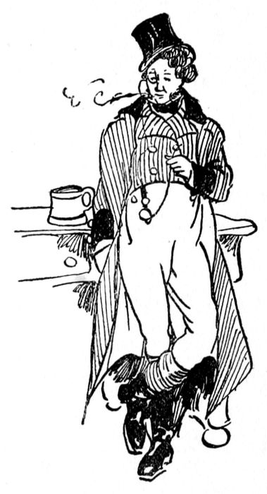 34But the guard has delivered at the corn-dealer’s shop, the brown paper packet he took out of the little pouch which hangs over his shoulder by a leathern strap, and has seen the horses carefully put to, and has thrown on the pavement the saddle which was brought from London on the coach-roof, and has assisted in the conference between the coachman and the hostler about the grey mare that hurt her off-fore-leg last Tuesday, and he and Mr. Weller are all right behind, and the coachman is all right in front, and the old gentleman inside, who has kept the window down full two inches all this time, has pulled it up again, and the cloths are off, and they are all ready for starting, except the “two stout gentlemen,” whom the coachman enquires after with some impatience. Hereupon the coachman, and the guard, and Sam Weller, and Mr. Winkle, and Mr. Snodgrass, and all the hostlers, and every one of the idlers, who are more in number than all the others put together, shout for the missing 35gentleman as loud as they can bawl. A distant response is heard from the yard, and Mr. Pickwick and Mr. Tupman come running down it, quite out of breath, for they have been having a glass of ale a-piece, and Mr. Pickwick’s fingers are so cold that he has been full five minutes before he could find the sixpence to pay for it. The coachman shouts an admonitory “Now, then, gen’lm’n,” the guard re-echoes it—the old gentleman inside, thinks it a very extraordinary thing that people will get down when they know there isn’t time for it—Mr. Pickwick struggles up on one side, Mr. Tupman on the other, Mr. Winkle cries “All right,” and off they start. Shawls are pulled up, coat collars are re-adjusted, the pavement ceases, the houses disappear; and they are once again dashing along the open road, with the fresh clear air blowing in their faces, and gladdening their very hearts within them.