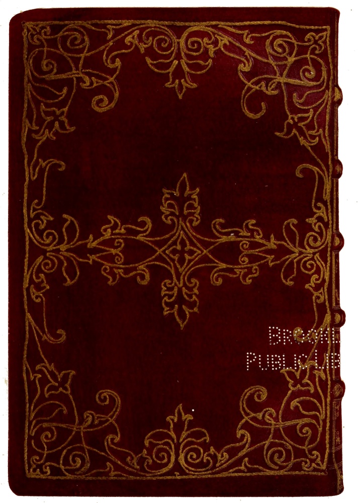 The reputed oldest specimen of all the English bookbindings is bound in red leather, possibly deerskin; it is known as “St.{19} Cuthbert’s Gospels,” and was found, A. D. 1105, in the tomb of St. Cuthbert when it was opened. St. Cuthbert died A. D. 687, and the book is supposed to have been buried with him. It contains the Gospel of St. John, written on vellum, and is now treasured at Stonyhurst College. The volume is in such a remarkable state of preservation, both outside and inside, that a certain amount of discredit attaches to the legend of its great antiquity. It is bound in thin boards of limewood, covered with red leather, curiously worked and coloured. The upper cover bears a decorative rectangular panel, the central portion of which, nearly square, has a symmetrical foliated curve of double-S form, repoussé, and showing slight traces of colour; above and below this are two long panels in which are drawn free-hand scrolls of Anglo-Saxon character, deeply lined. These scrolls are painted blue and yellow. The under side is simply ornamented with fillets. The design of this binding is unquestionably very old, and may fittingly be referred to about the date of St. Cuthbert’s death. Mr. E. Gordon Duff, however, inclines to the view that it is not actually the original binding, but is a copy of about the twelfth or thirteenth century. Even if it were made at the latest date attributed to it, it is still the earliest existing English book bound in red leather, as well as the only one decorated in the true style of Anglo-Saxon art.