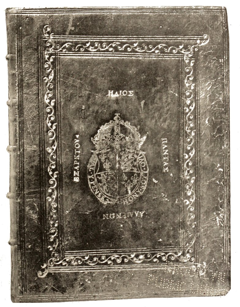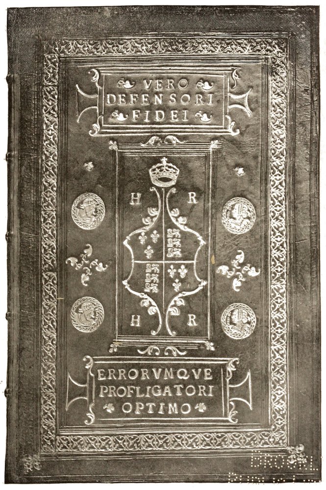 CALF BINDING OF A COPY OF THE WORKS OF ST. CHRYSOSTOM, PRINTED AT BASLE IN 1530. MADE FOR HENRY VIII.