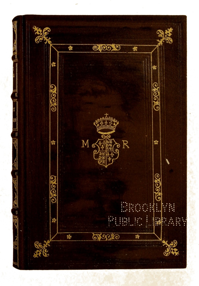 Such English bookbindings of an early date as still exist are, as a rule, bound in dark brown goatskin or brown sheepskin. The earliest notices about bookbindings are to be found in some of the wardrobe accounts of Edward IV., but of the many bindings which were made for that king, the only remaining sign now left is a loose cover in the library of Westminster Abbey; it is ornamented with a panel stamp bearing the king’s arms, with supporters.