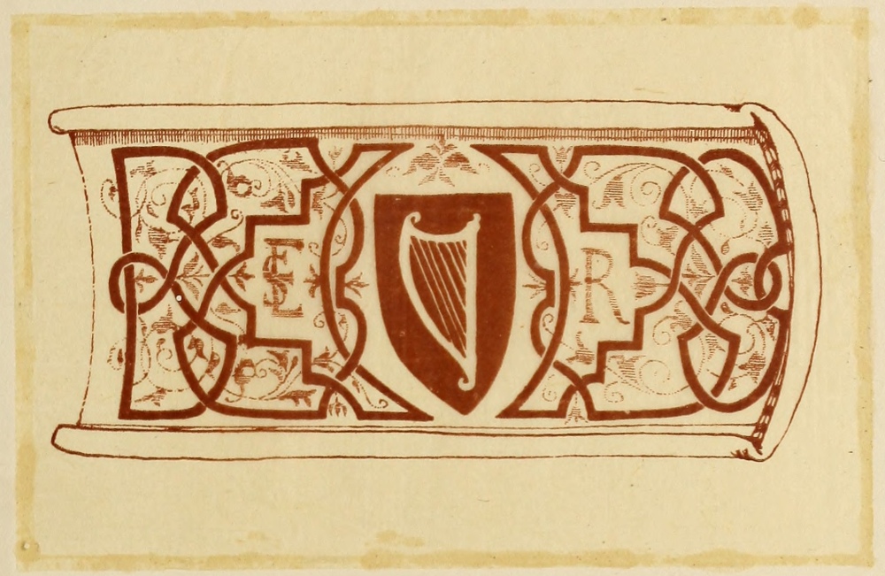 It is disappointing that no single specimen of the rich Mediæval style of bookbinding exists of English workmanship. Such bindings were undoubtedly made here, and numerous drawings of them are to be seen in contemporary manuscript. It is certain that the intrinsic value of these covers attracted the attention of some of our sovereigns, especially the early Tudors, and whenever they{14} were of any value at all, the crucible accounts for their disappearance. Luckily the manuscripts themselves, now infinitely more valuable than the gold and silver which formerly covered them, have in innumerable instances been carefully preserved unhurt. But it is some comfort to know that much beautiful work of the kind we have so unfortunately lost here can be seen and studied in Dublin, at the Royal Irish Academy and other institutions. In that city are to be seen noble specimens of the old book shrines, or covers, which protected the valuable manuscripts, illuminated sometimes by the ancient Irish scribes in such richness that they have never been excelled in beauty. These covers are in all probability nearly the same as the English ones were; they bear ornamentation of a similar Gothic character, nearly analogous to the Anglo-Saxon styles, and the jewels are cut and set in the same way as is found in old English jewellers’ work. The “cumdach,” or cover, of Molaise’s Gospels, that of the Stowe missal and “Dimma’s book,” are all beautiful examples. The Irish jewellers were justly celebrated workmen; they migrated largely to the Continent, and traces of their skill often show on Byzantine bindings made from about the ninth to the eleventh centuries. The older part of the magnificent cover of the Gospels of Lindau is Irish work. This was shown in 1891 at the Burlington Fine Art Club, and until lately was the property of the Earl of Ashburnham. It is one of the most gorgeous bookbindings in existence.
