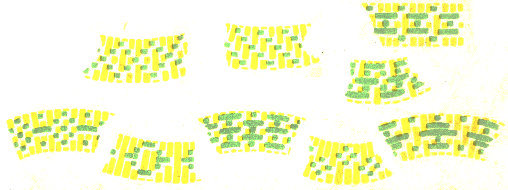 Little need be said of the color patterns shown on page 11. At one end of each we have indicated the positions of the strands on the buckle.