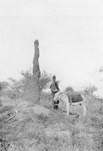 Learning that the Matabele War had broken out, I made every effort to get up to the front; but as I had had no previous experience, the military authorities would not take me on. However, I was determined to get to Bulawayo somehow, and with this idea made a start by taking the train for Pietermaritzburg, having just enough funds left to pay the fare. On arriving I was lucky enough to get a job to look after the engine and boiler at a steam bakery, and with the money I thus earned I was able to move on, a fortnight later, to Charlestown. I had now just enough money to pay for a night’s lodging, and the next morning I crossed the boundary between Natal and the Transvaal, 18and moved on to Volksrust, getting a glimpse of the famous Majuba Hill on my journey.