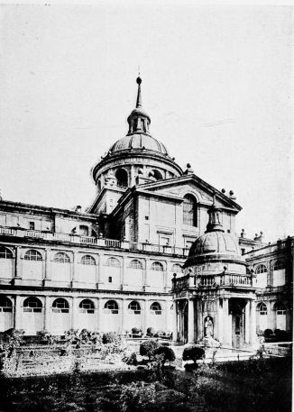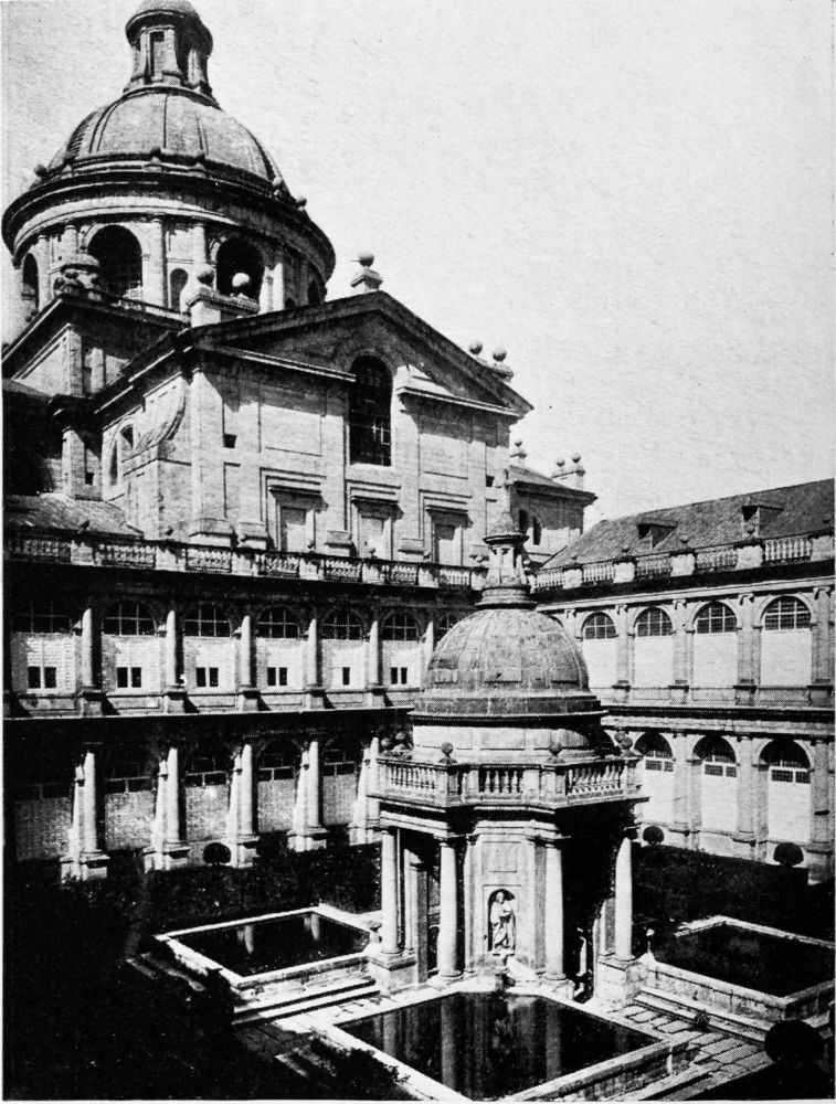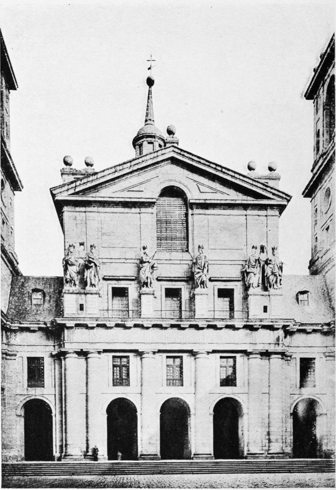 Buildings, like poems or pictures, reflect the character of those who conceive and produce them. The Escorial may be likened to a document or a painting revealing the temperament, the aspirations, and the philosophy of a powerful, sombre, and withal, fascinating personality. Its severe form and its restrained embellishment are stamped with the individuality of the monarch who devoted the leisure of thirty years of his life to the erection, extension, improvement, and internal adornment of an immense and costly pile, comprising within its walls a monastery, a church, a burial-fane, a palace, a college, and a gallery of the arts. The Escorial was a place of retirement, an imposing hermitage for the devout and moody Philip II. of Spain. It is a monument{2} to his power, a revelation of his mind; and, if we study the edifice, we shall learn what manner of man he was who founded it.