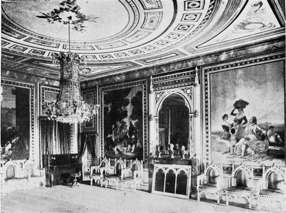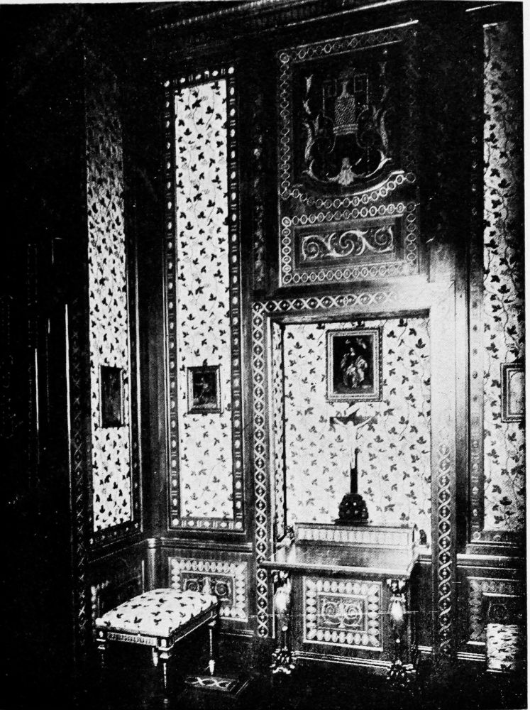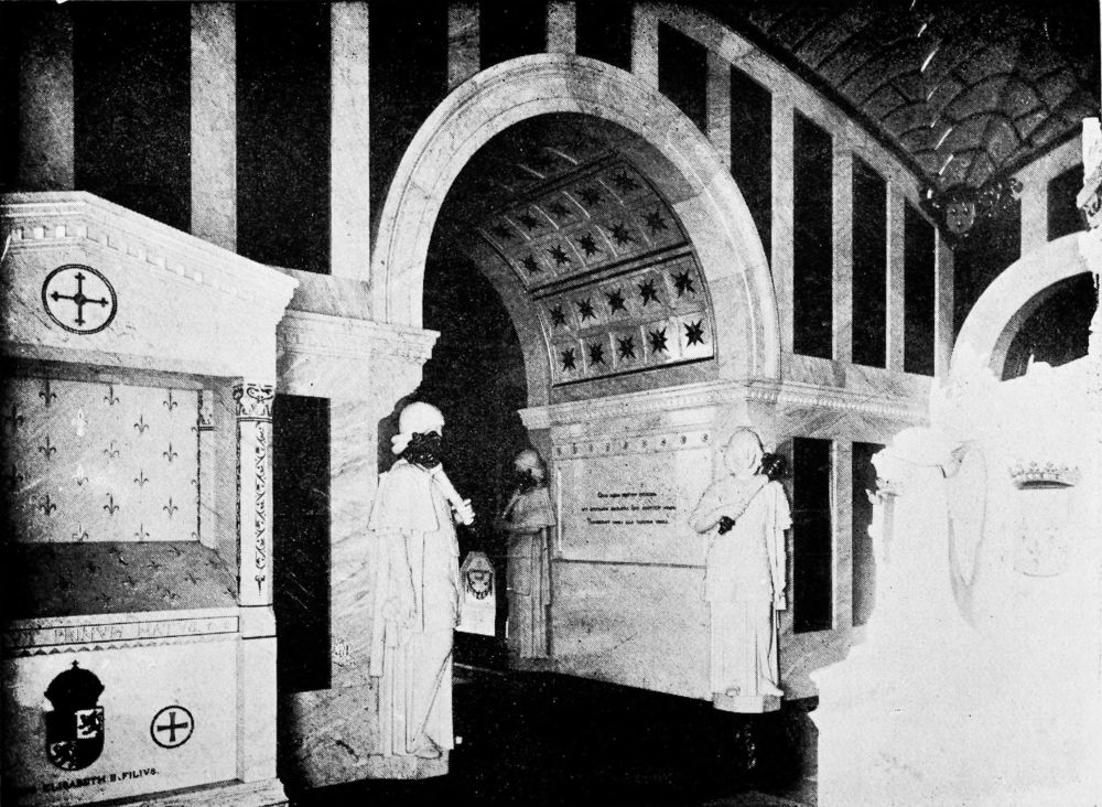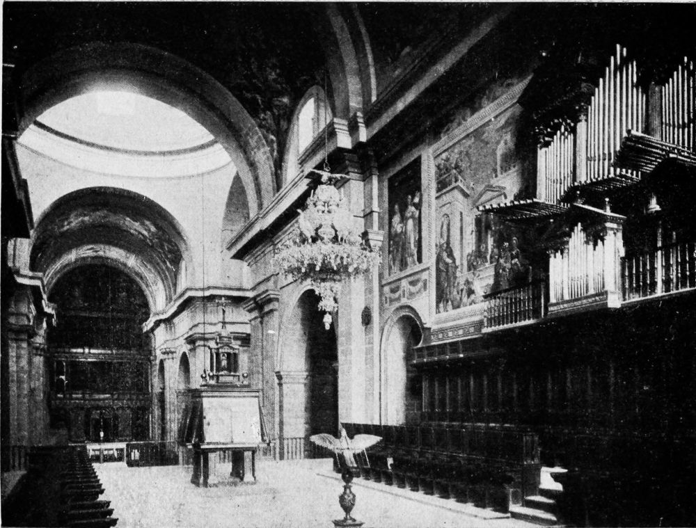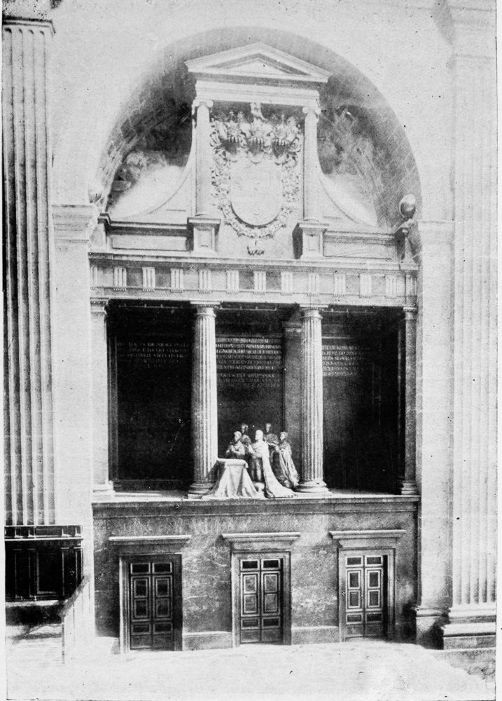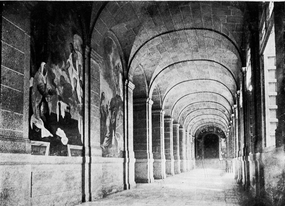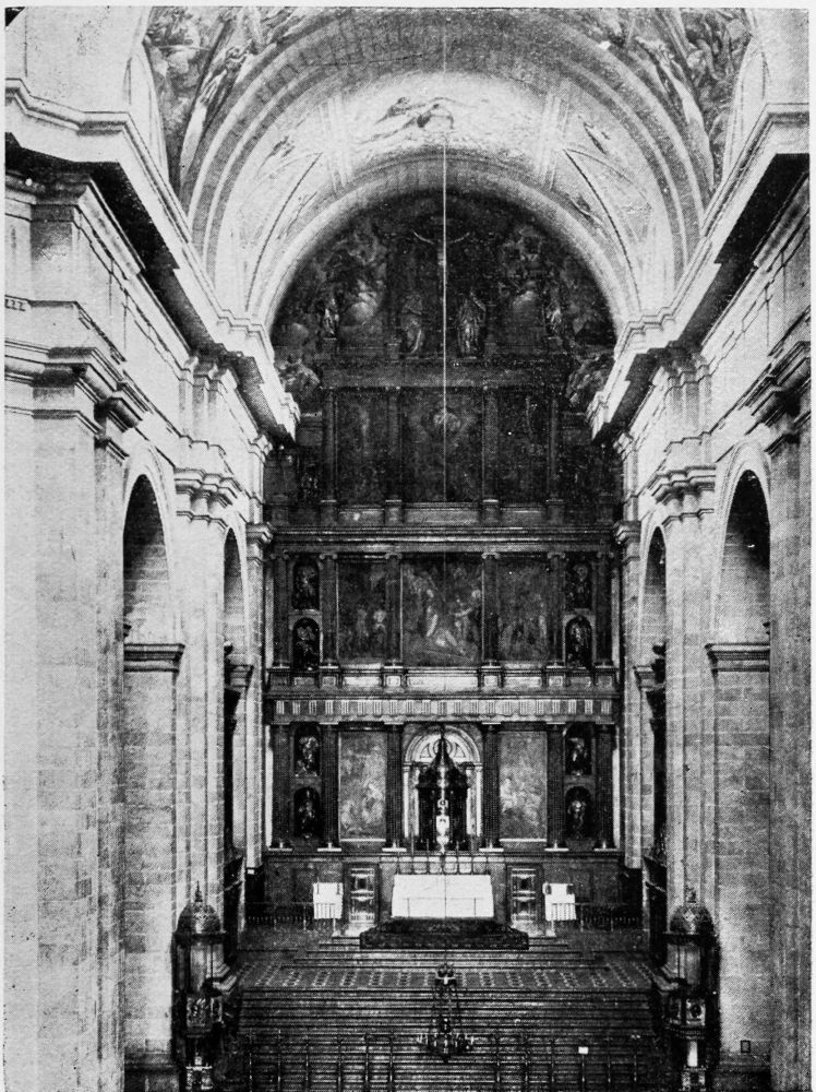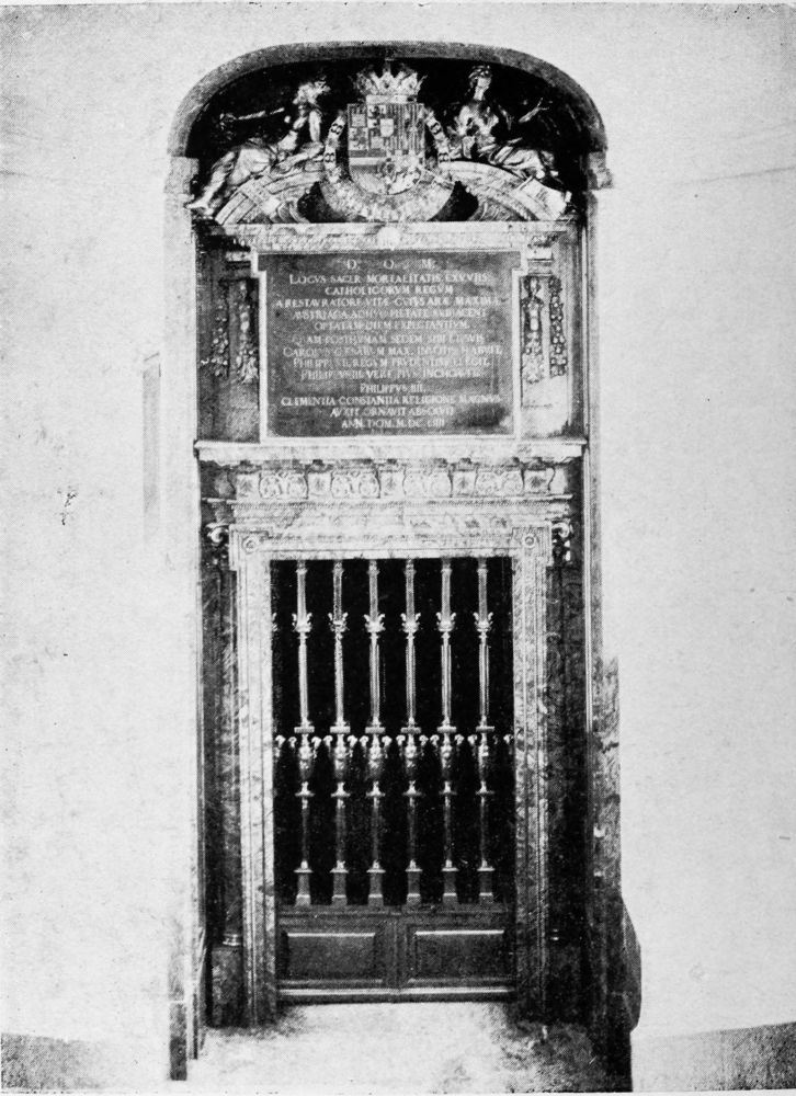 In accordance with his father’s wishes, Philip III. began to build the present burial-vaults soon after his accession to the throne. He did not live to see the completion of the work, which was continued during the reign of Philip IV. The construction was, however, delayed through the attitude of the overseer of the works, who objected to the expenditure of so large a sum of money from the national exchequer; but under the monk Nicolas, the Panteon was at length made ready, in 1654, for the reception of the coffins of members of the royal families.{18}