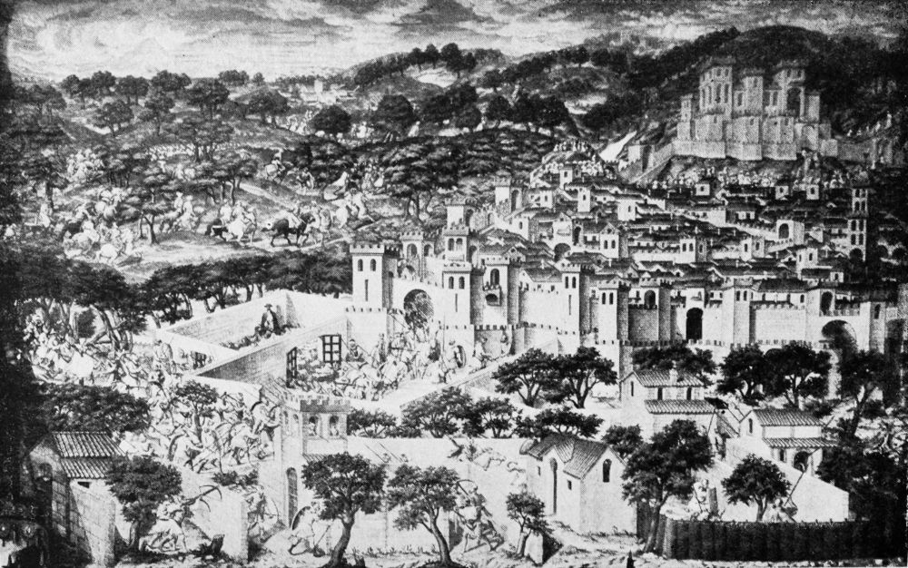 The battle of St. Quintin, in August 1557, which saw the triumph of the Spanish arms over the French, was an event of extreme moment, and was the source of Philip’s resolve to erect the Escorial. In this engagement the Duke of Savoy, at the head of the Spanish troops, D’Egmont, in command of the Dutch and German horsemen and infantry, and Lord Pembroke with his force of British soldiers, defeated the army of France, and killed three thousand men. During the height of the battle, which was fought on the day dedicated to San Lorenzo, Philip besought the assistance of that saint, and vowed that if aid were vouchsafed, he would build a mighty and permanent monument to the deliverer.