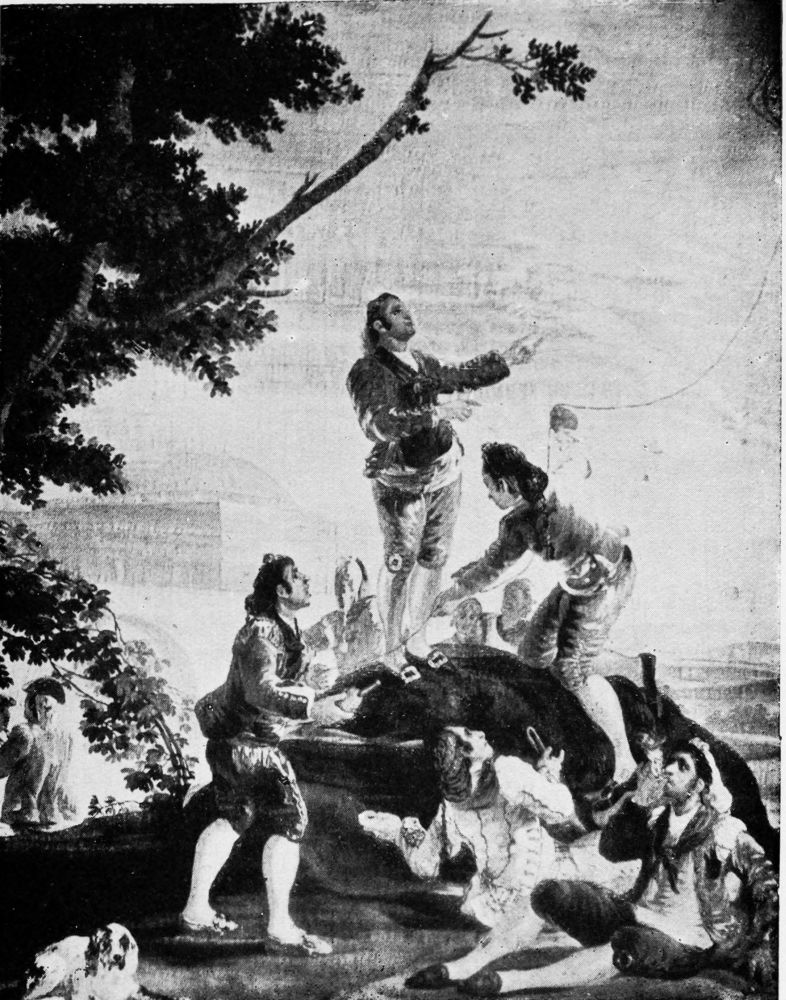 The heavy cost of erecting the Escorial increased the amounts paid in taxation, and among the people of Spain there was some discontent with the expenditure. There was also disaffection upon one or two occasions among the mechanics employed upon the building. The{14} cause, or the effect, of this insubordinate feeling was the rumour that Satan in the guise of a hound with wings prowled about the corridors in the dark. A friar hearing certain gruesome sounds during matins, went out to investigate the cause of the disturbance, and discovered a stray dog wandering in the building. The dog was promptly hanged, and his carcass exposed on the exterior of the edifice;—proof positive that the mysterious visits were at an end.