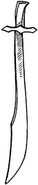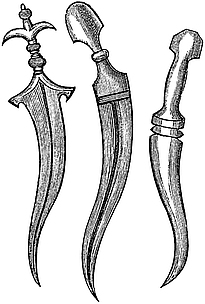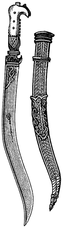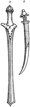 On a lower plane the Sword became the invention and the favourite arm of the gods and the demi-gods: a gift of magic, one of the treasures sent down from Heaven, which made Mulciber (‘Malik Kabír,’ the great king) divine, and Voelunder, Quida, Galant, or Wayland Smith a hero. It was consecrated to the deities, and was stored in the Temple and in the Church. It was the ‘key of heaven and hell’: the saying is, ‘If there were no Sword, there would be no law of Mohammed’; and the Moslem brave’s highest title was ‘Sayf Ullah’—Sword of Allah.