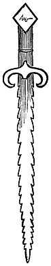 In time the word framea was apparently applied to wholly different weapons. Thus Augustinus makes it an equivalent of spatha or rhomphaia; and Johannes de Janua (‘Glossary’) explains it as ‘glaive aigu d’une part, et d’autre espée.’