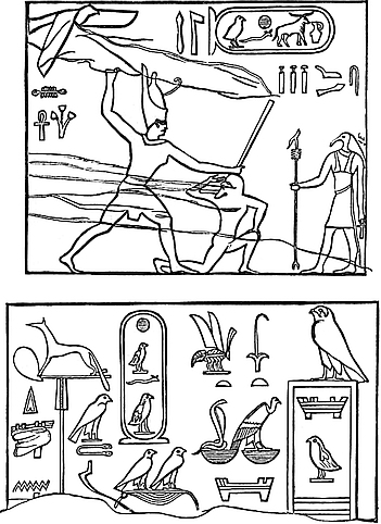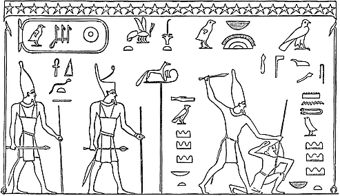 The Princess Thermutis, says Josephus, named Moshe (Moses) from mo (má = water) and uses, those who are saved out of it (ses = to reach land). Possibly it is Mu-su = water-son. Josephus was sorely offended by the ‘calumnies’ of Manetho; this Egyptian priest, who wrote under Ptolemy Philadelphus about the time of the LXX, declared that the Hebrews were a familia of leprous slaves who, when expelled from Egypt, were led by a renegade priest called Osarsiph (Osiris-Sapi, god of underworld); and that the number was swollen by Palestinian strangers driven out by Amenophis. He gives the number of lepers and unclean at 250,000 (= 50,000 × 5), and the Hyksos, another impure race, number also 250,000. The learned classics accepted this view, duly abusing the ‘gens sceleratissima’ (Seneca), and the ‘odium generis humani’ (Tacitus).
