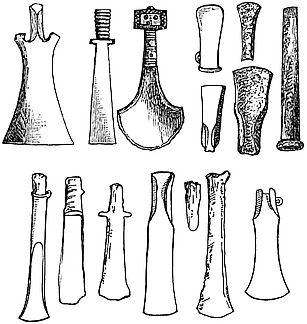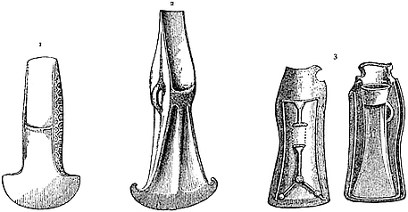 No. 3. Palstaves, socketed celts (introduced from abroad); true socketed spear-heads, Swords, and the variety of tools and weapons found in the hoards of the old bronze-founders.