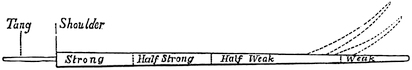 Again, it would be unadvisable to neglect the chronological and synchronological order (Demmin’s). This assists us in tracing with a surer hand the origin and derivation; the annals, the adventures, and the accidents of an almost universal weapon, whose marvellously chequered career excels in dignity, in poetry, and in romance, anything and everything the world has yet seen. And here I have not been unmindful of Dr. Arthur Mitchell’s sensible warning that ‘the rude form of an implement may follow as well as precede the more finished forms.’[2] Due regard to dates enables us to avoid the scandalous confusion of the vulgar museum. Demmin found a large number of swords catalogued as dating with the time of Charles the Bold, when the shapes proved that they belonged to the late sixteenth and even to the early seventeenth centuries. I was shown, in the museum of Aquileja, a ‘Roman sword’ which was a basket-hilted Venetian, hardly two hundred years old. It is only an exact chronology, made to frame the Geographical and the Formal pictures of the weapon, that can secure scientific distribution.