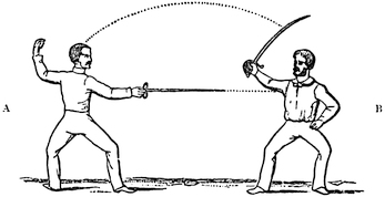 But the case is different on the continent of Europe. Probably at no period during the last four centuries has the Sword been so ardently studied as it is now by the Latin race in France and Italy. At no time have the schools been so distinguished for intellectual as well as for moral proficiency. The use of the foil ‘bated’ and ‘unbated’ has once more become quasi-universal. A duello, in the most approved fashion of our ancestors, was lately proposed (September 1882) by ten journalists of a Parisian paper, to as many on the staff of a rival publication. Even the softer sex in France and Italy has become cunning of fence; and women are among the most prosperous pupils of the salles d’armes. Witness, for instance, the ill-fated Mdlle. Feyghine of the Théâtre Français, so celebrated for her skill in ‘the carte and the tierce and the reason demonstrative.’