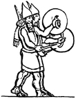 Man’s civilisation began with Fire—how to light it and how to keep it lit. Before he had taken this step, our primal ancestor (or ancestors) evidently led the life of the lower animals. The legend of ‘Iapetus’ bold son’ Prometheus, like many others invented by the Greeks, or rather borrowed from Egypt, contained under the form of fable a deep Truth, a fact, a lesson valuable even in these days. ‘Forethought,’ the elder brother of ‘Afterthought,’ brought down the semina flammæ in a hollow tube from Heaven, or stole it from the chariot of the Sun. Here we have the personification of the Great Unknown, who, finding a cane-brake or a jungle tree fired by lightning or flamed by wind-friction, conceived the idea of feeding the σπέρμα πυρὸς with fuel. Thus Hermes or Mercury was ‘Pteropédilos’ or ‘Alipes;’ and his ankles were fitted with ‘Pedila’ or ‘Talaria,’ winged sandals, to show that the soldier fights with his legs as well as with his arms.[3]
